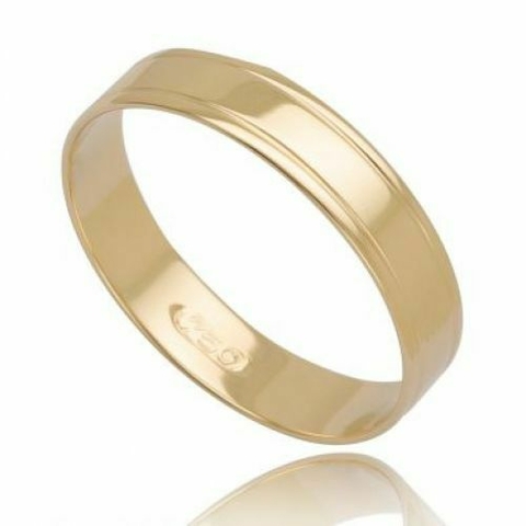 Aliança confeccionada em ouro 18k com dois frisos nas laterais
